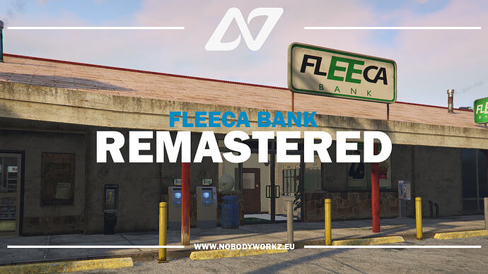 Introducing the Nobody Workz Fleeca Bank Interior Remastered, a premium overhaul of the classic Fleeca Bank branches. This MLO focuses exclusively on the bank interiors, delivering a modernized and immersive environment while maintaining the original exterior to ensure seamless integration into your existing world. Each interior has been meticulously redesigned with a clean, contemporary design, significantly improving the overall look and feel of the banking experience for your players. The result is a more professional and realistic atmosphere, suitable for everything from routine banking and employee interactions to intense robbery scenarios. This mapping enhances all interior-based roleplay scenarios and is fully optimized for immediate use within your FiveM server.