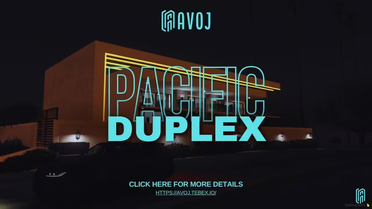 The Pacific Duplex Mansion is a modern marvel, offering a breathtaking view of the Pacific Ocean while maintaining a standard city road view, perfect for a seamless blend of urban life and coastal relaxation. Designed with both luxury and comfort in mind, this MLO makes the perfect addition to any FiveM server.
