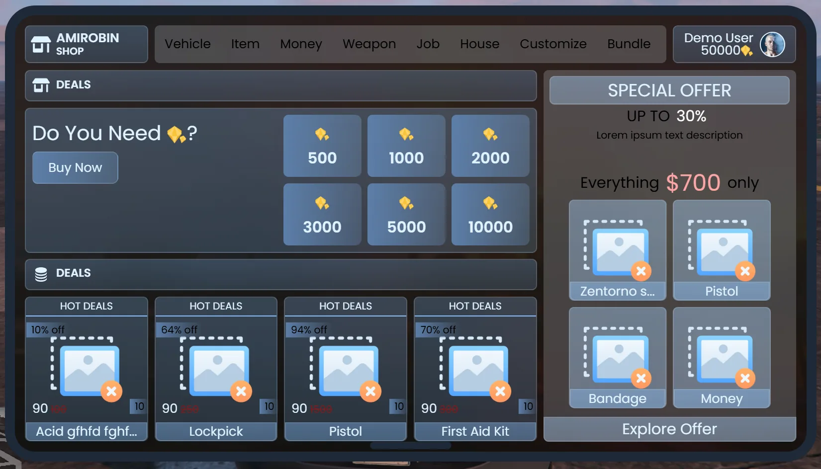 \n \n \t Easy adjustable config. \n \t Fully optimized \n \t Extra slots available for purchase. \n \t Responsive Design. \n \t Tebex Integration. \n \t Automatic code sales thanks to Tebex \n \n[MYSQL] \n \n \t oxmysql \n \t mysql-async \n \t ghmattimysql \n