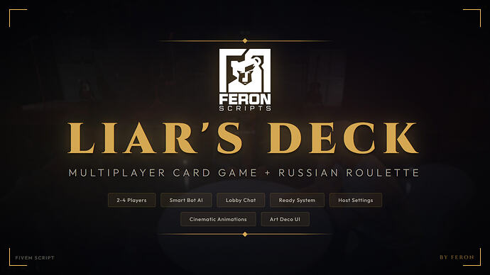 Respostas rápidas baseadas nas informações publicadas para Feron Liar's Deck — Multiplayer Card Game + Russian Roulette for FiveM.