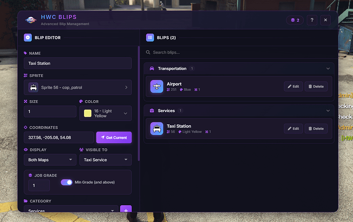 Enhance your FiveM server with HWC Blips V2, the ultimate free blip creator. This resource offers a powerful and modern system, allowing you to create fully customizable blips that perfectly match your server's unique requirements.