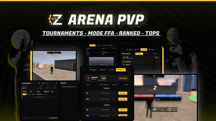 iZaap ArenaPVP is a premium, all-in-one PvP system designed for FiveM servers seeking a serious, organized, and modern competitive experience. More than just simple duels, this resource offers custom PvP rooms, a ranked queue system, tournaments with brackets, a live combat UI, killfeed, match HUD, FFA support, and private routing buckets to isolate fights from the main world. ArenaPVP is built with flexibility, performance, and a clean UI/UX in mind, making it a strong solution for communities that want a fully integrated competitive combat system.