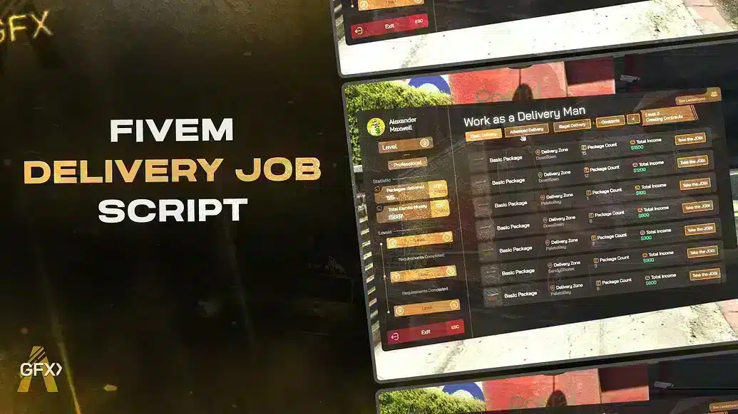 Bring realistic delivery and logistics operations to your FiveM server with GFX Advanced Delivery Job, a comprehensive courier system featuring multi-stop routes, vehicle management, package handling, and progression mechanics. This script transforms basic delivery jobs into an engaging career path with route optimization, time management challenges, and rewarding payment structures that scale with performance.