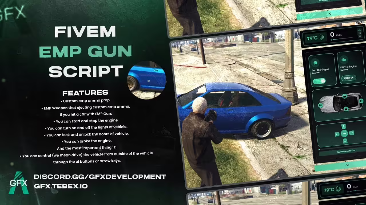 The GFX EMP Gun offers sophisticated vehicle disabling mechanics that go beyond simple stop vehicle scripts. The visual marker system, range detection, configurable effects, and optional explosion mechanics create a realistic and tactical EMP weapon experience. The extensive configuration options allow servers to balance the weapon for their specific needs - from non-lethal police tool to devastating tactical weapon. Clean code and optimized performance ensure smooth operation even in high-action scenarios.